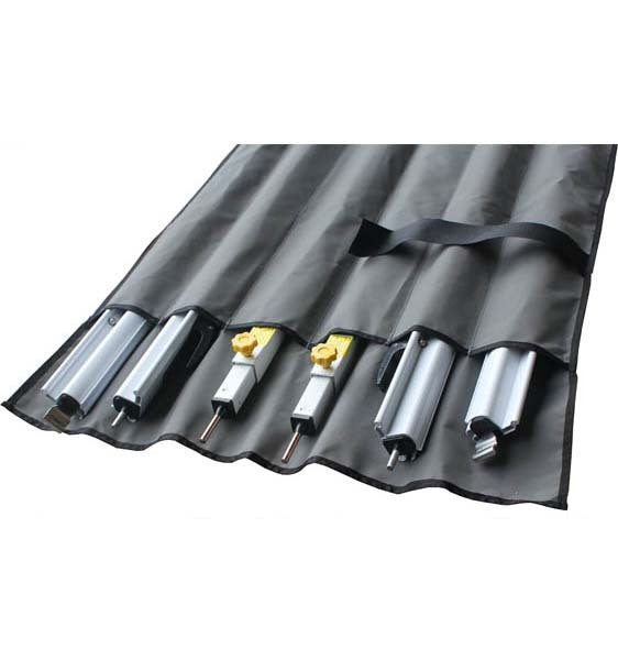 Supa-Peg's canvas storage bag for Anti Flap Kits uses quality Rip Stop canvas and is an easy and convenient way to store them safely away. Six individual storage pockets, 4 for the antiflap kit and 2 for your curved rafters if they are required. A third curved rafter can be placed in the centre of the bag if you have a larger awning. Then just wrap up and store away securely using the 2 x 50mm velcro straps.