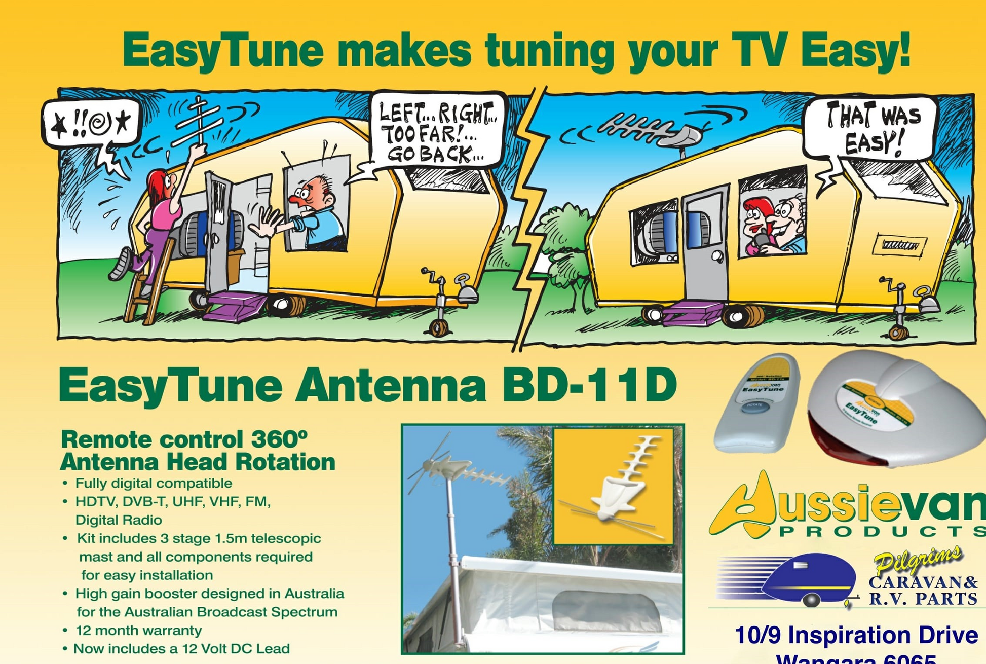 The Easy Tune Antenna is designed to be easy to setup. The antenna is compact and robust yet has superb performance for its size. It has a powerful, high gain signal amplifier providing excellent reception in fringe coverage areas, country towns as well as cities. The Easy Tune antenna is fully digital and specifically designed and optimised for mobile homes. The antenna is capable of receiving digital signals within the entire Australian TV broadcast spectrum.