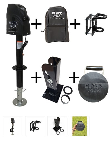 The Black Jack™ Trailer Jack is the simplest, quietest and most advanced electric jack on the market today. BJTJ-1000 Includes clamp bracket, bolt kit, folding foot, foot pad and all weather cover (No wiring kit, just connect to an Andersen plug).