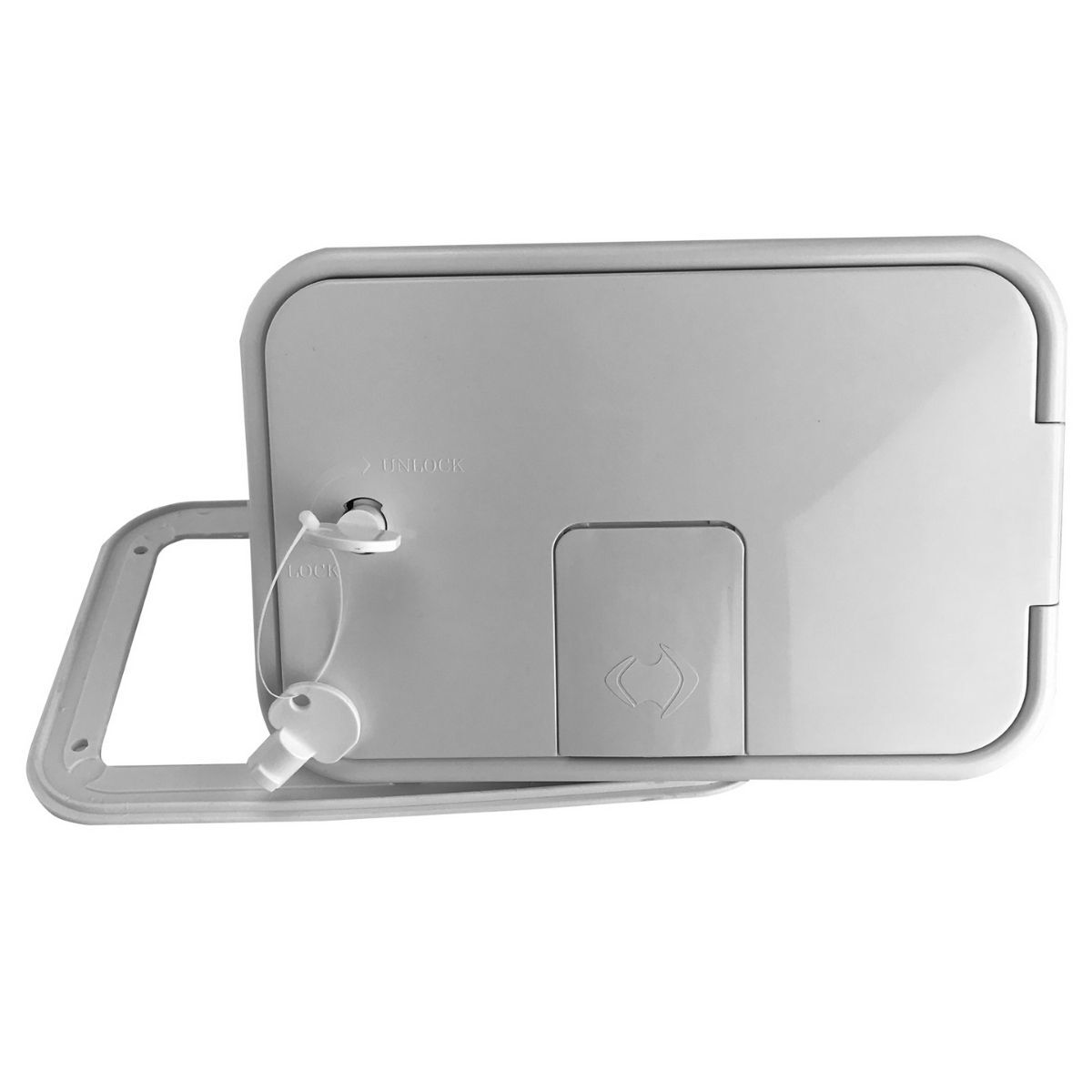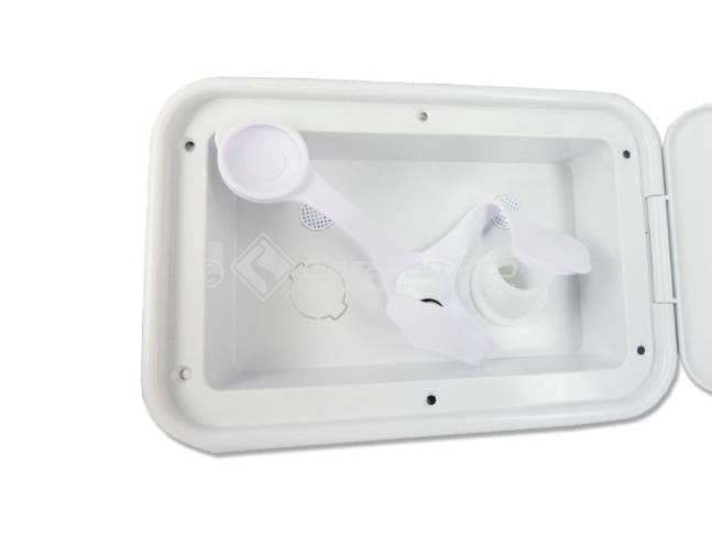 Lockable water filler. 230mm x 153mm, requires 83mm recess. Includes Clip-On fitting for connection to mains pressure system. One water tank filler is also included a space for second optional filler is built in. Keys included inside the filler.