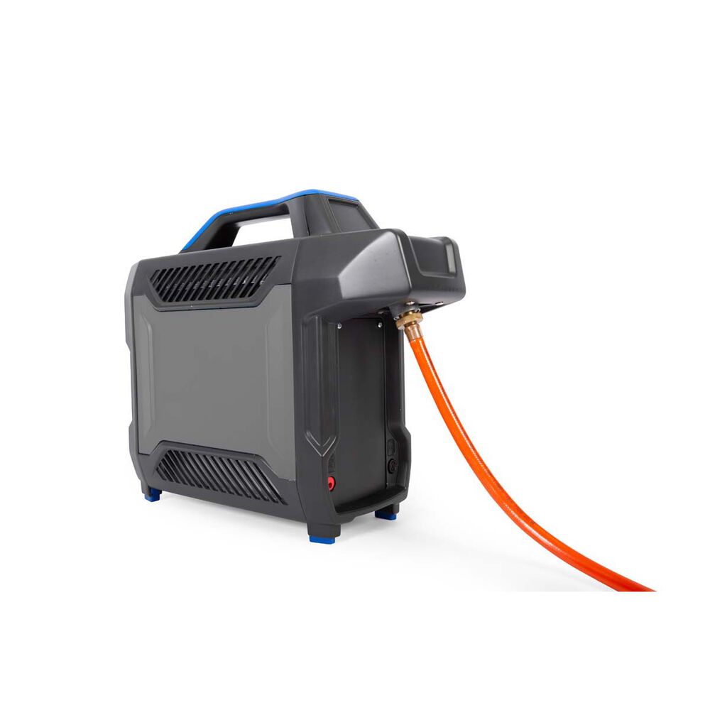 Attaching the 1.5m pump hose and 2.5m shower hose is a breeze with the quick-connect fittings, ensuring hassle-free setup. Even if you find yourself with a flat battery, the Aquaheat has you covered. You can recharge it while showering by operating it directly from the included 12V DC lead and connector or a separately available AC adaptor.