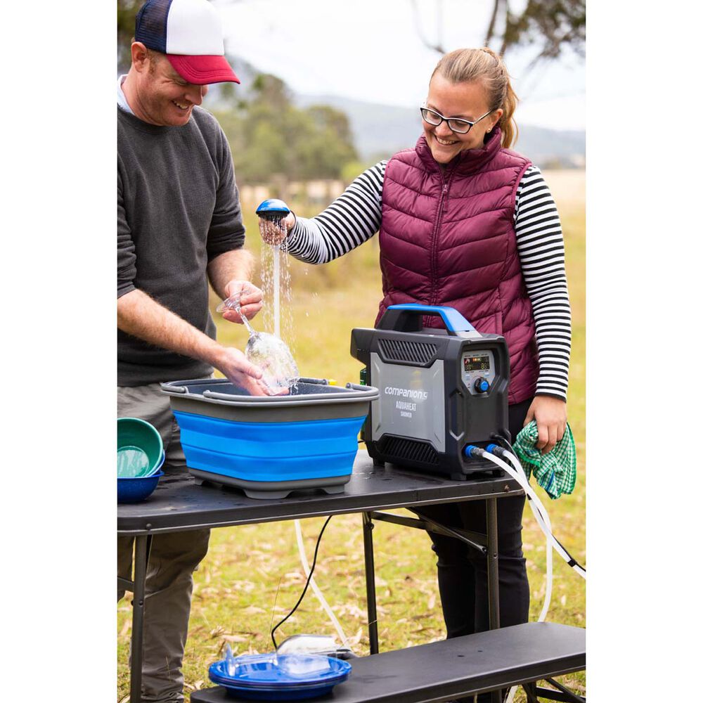 The Companion's Aquaheat Water Heater delivers hot water in seconds, no matter where you are, making it an easy and efficient solution for staying clean and comfortable while camping.