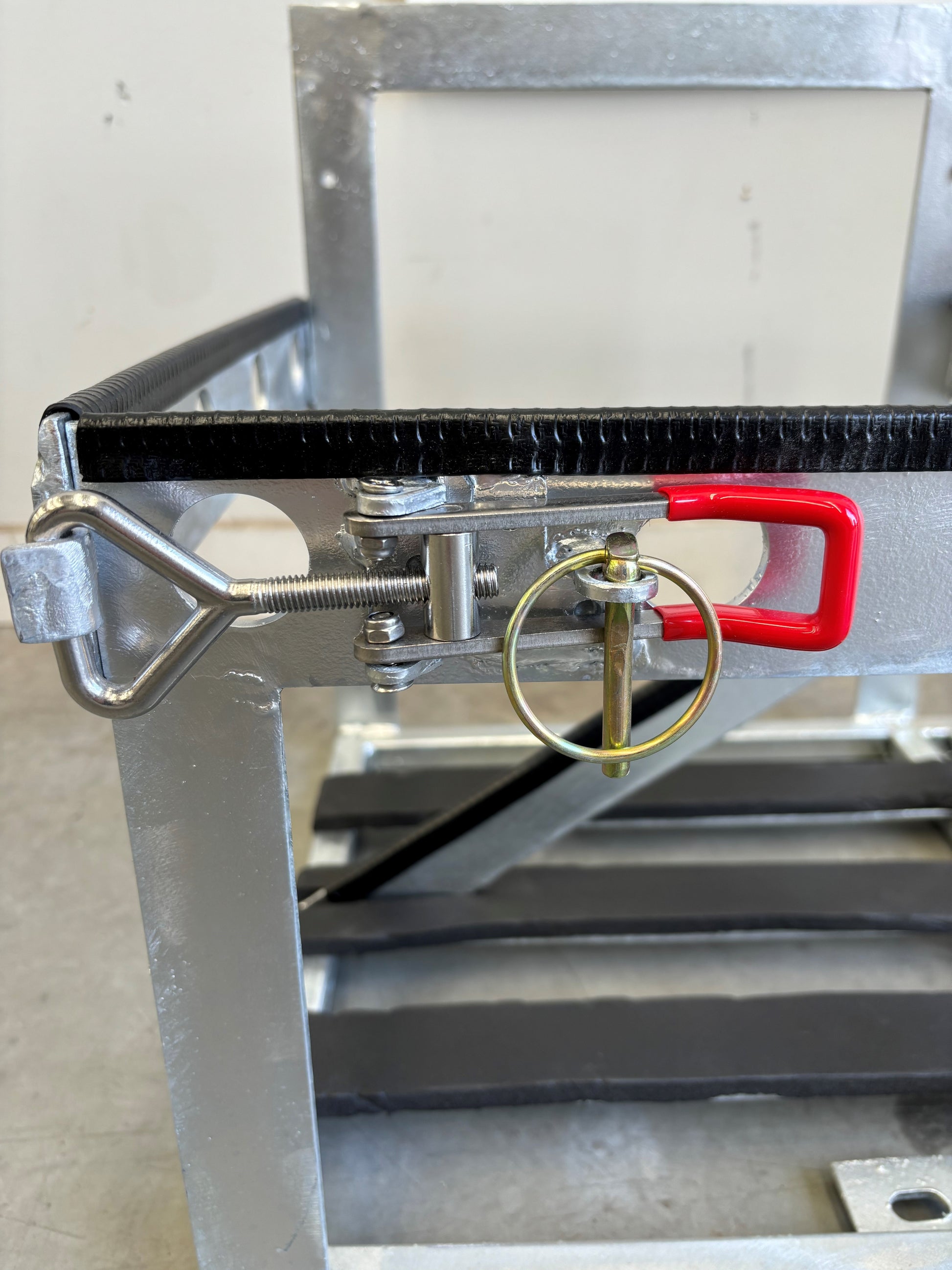 Galvanized dual Gas and jerry can holder and optional area for your diesel heater tank to bolt on at the front of your caravan chassis.