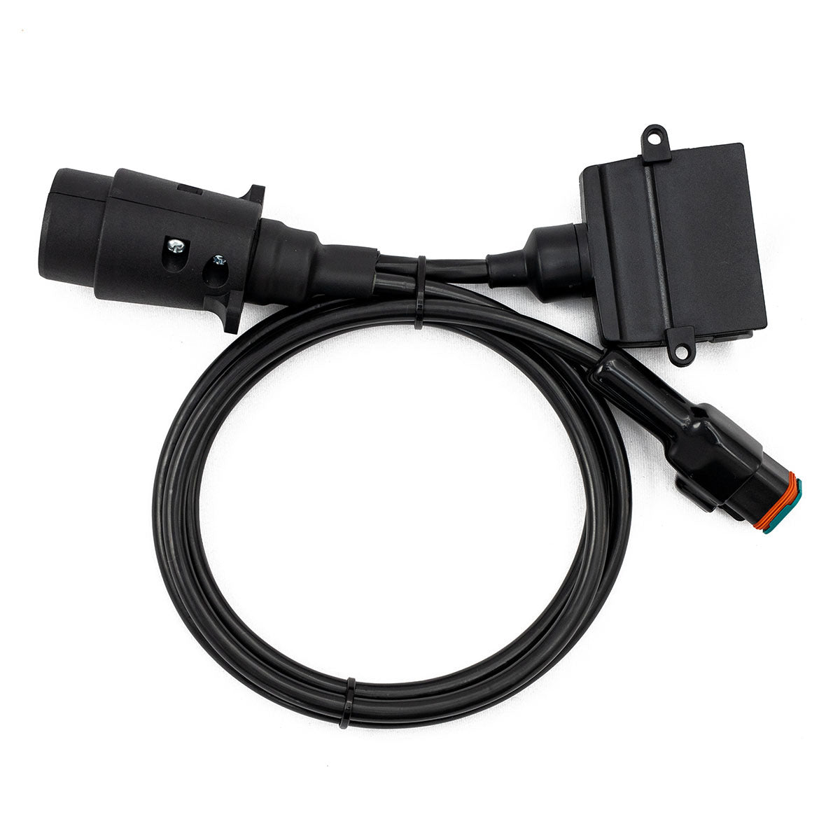 7 pin large round on vehicle to 7 pin flat on trailer.
