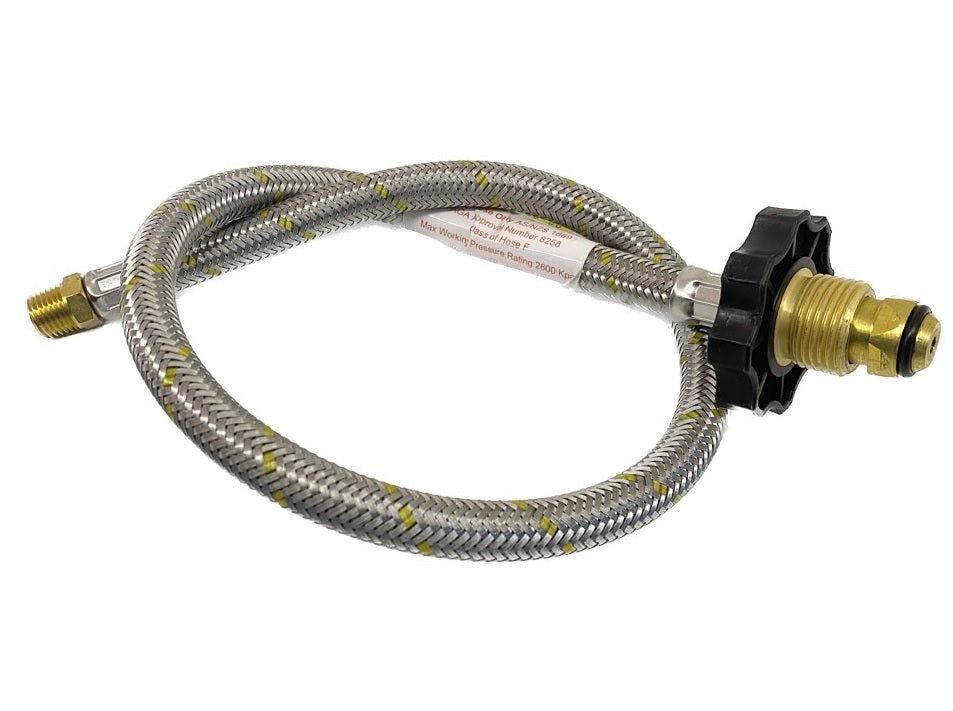 LPG BRAIDED GAS HOSE PIGTAIL CARAVAN HAND WHEEL POL 1/4 INV FLARE 600MM
