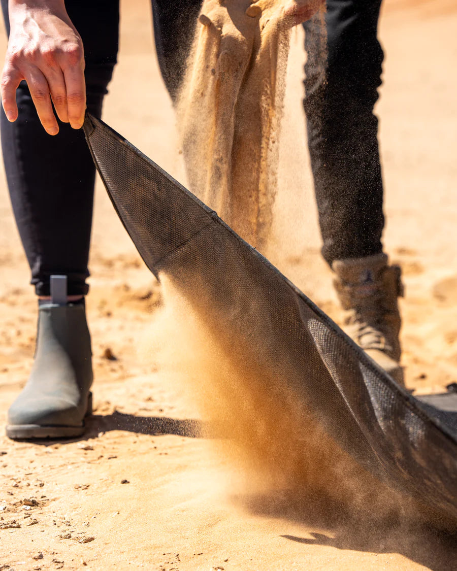 “The Sand Dough effect” is when there is sand build up between the two layers of matting. When this sand gets excessively wet due to rain, it causes a dough effect making it difficult for the sand to naturally drop through the mat when packing up like it would normally do. (Which happens with all double layered mats)