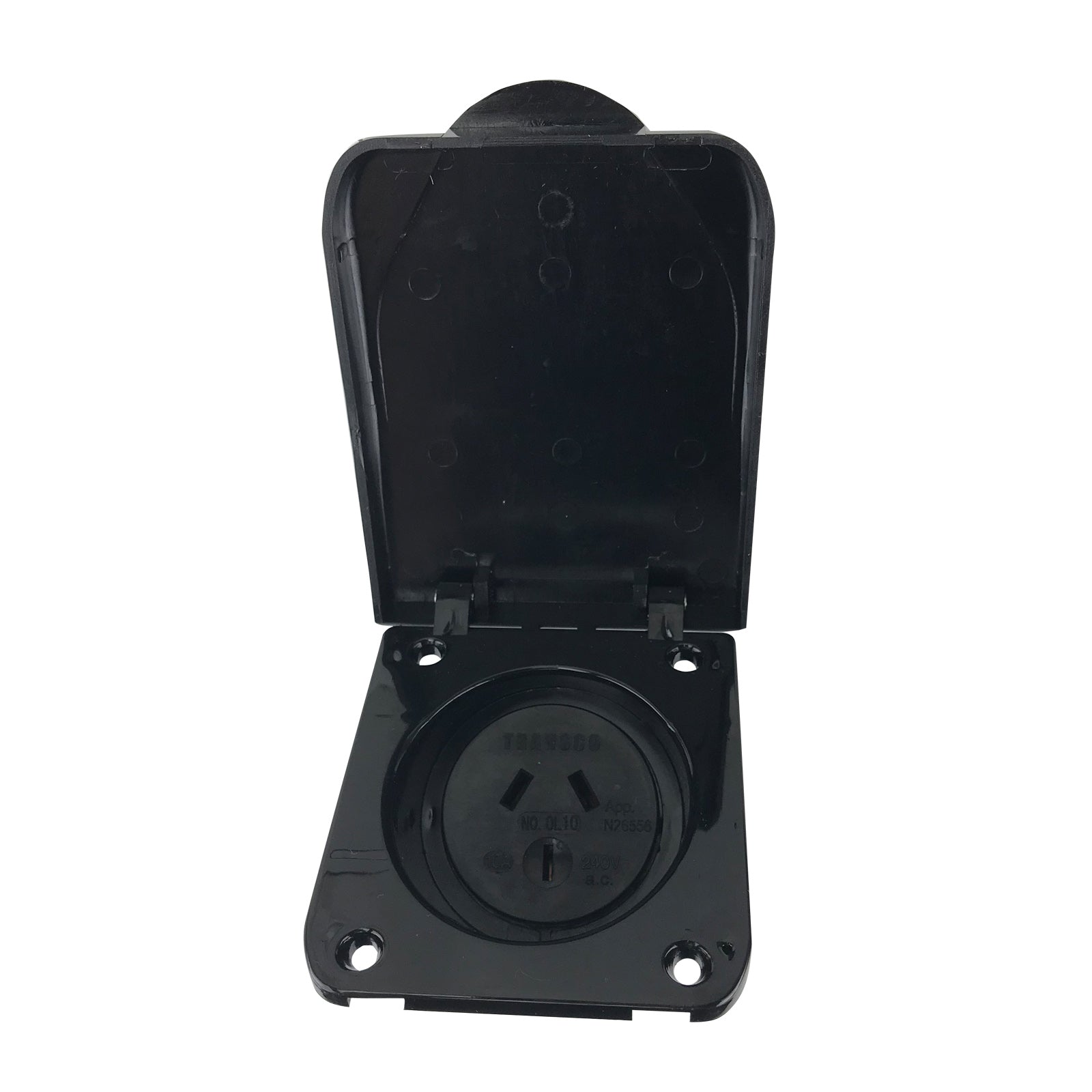 Power Run Power Outlet, 10amp, Weatherproof lid, WHITE. Used to TAKE 240V power FROM an RV.