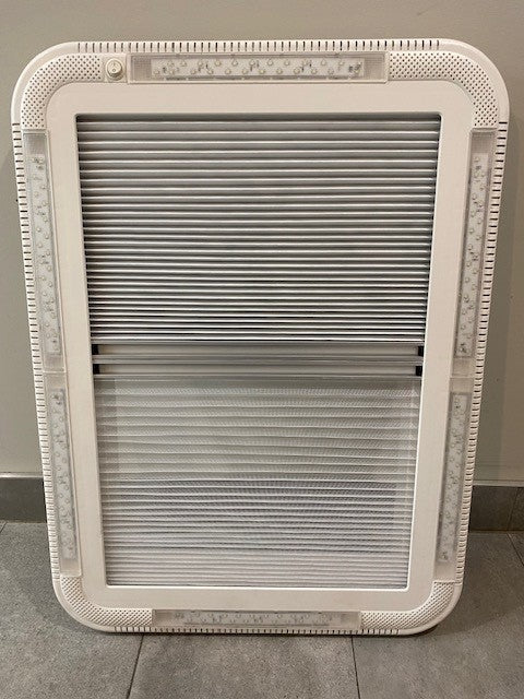 Ranger 12V Shower Hatch with LED lights comes with 12V exhaust fan with two way switch, removable fly screen and surrounded LED light.