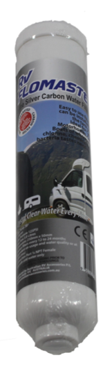 RV FLOWMASTER INLINE SILVER CARBON WATER FILTER T33S