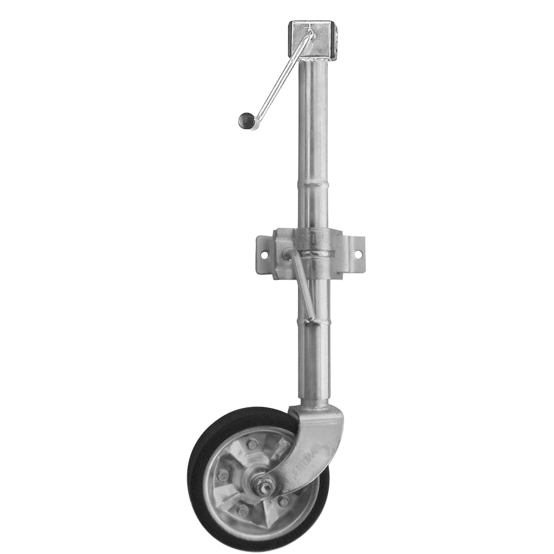 Extra height side winding jockey wheel for caravans and off-road trailers, with swivel pin.