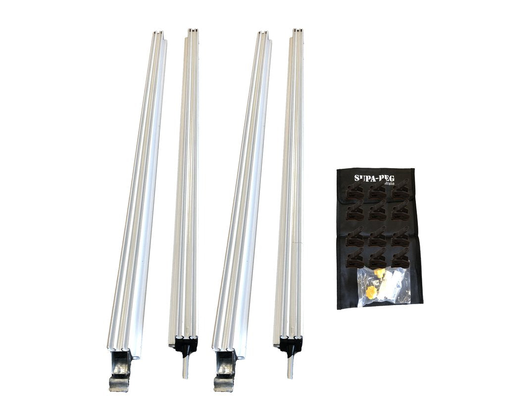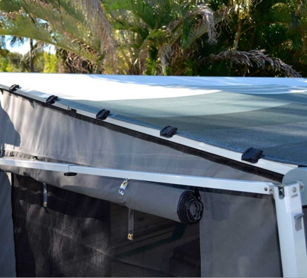 Supa-Peg Australia has developed a new style Australian Made De-Flapper Kit to help keep your vinyl awning taught and sealed. Add walls to your roll out awning in a quick and easy manner which results in a wind and water proof seal between the edge of the roof fabric and the wall. Easily add a porch into the additional sail track on the strong and robust extrusion.