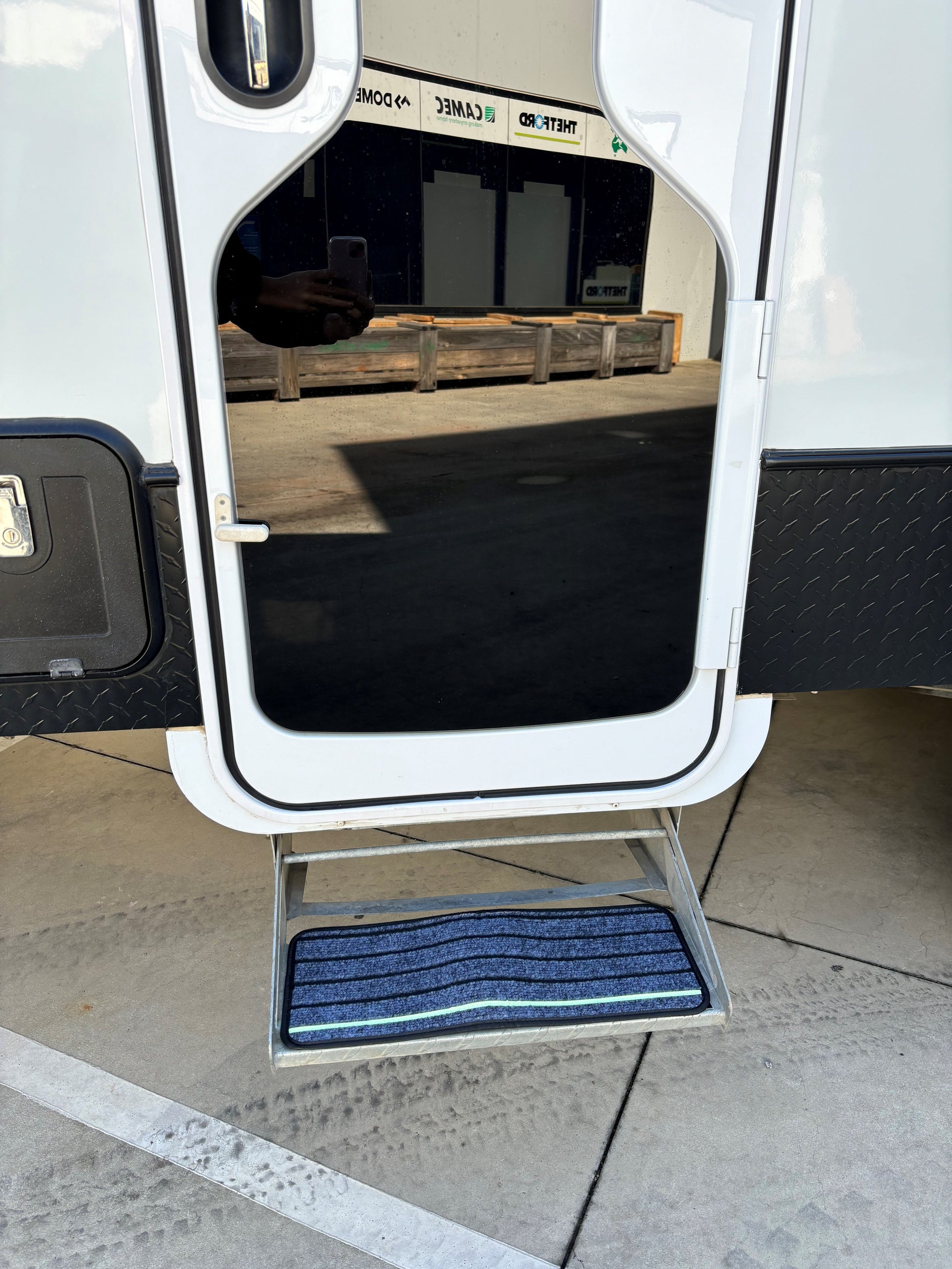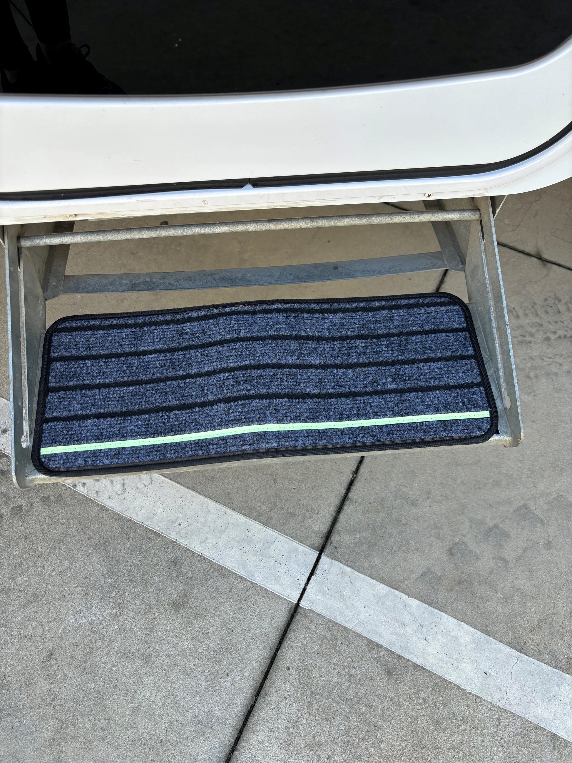 The perfect mat for your step to stop you dragging in any mud, and with a glow in the dark strip so you don't miss the step at night.